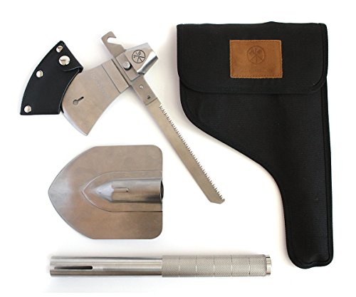 Premium Adventure Mate 5 in 1 Multi-purpose Tool: Hatchet + Hammer + Hook + Shovel + Saw in a Holster